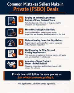 Here are some of the most common mistakes sellers make in private or FSBO deals.